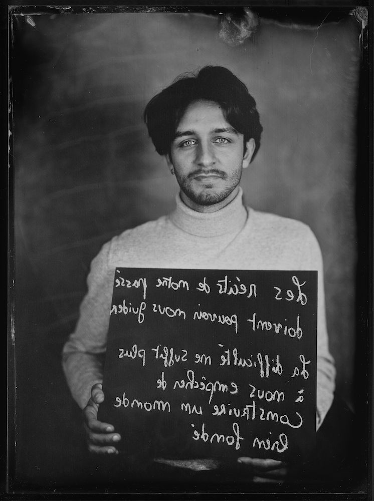 La crise nous a replié sur nous-mêmes, alors nous proposons un déploiement vers les autres ; pour lire, pour apprendre, pour comprendre ces lignes, il ne suffira pas de regarder ; il faudra tendre un miroir sur les portraits des jeunes et des anciens pour y déchiffrer leurs messages car nos photographies sur plaques de fer sont des épreuves originales où tout y est inversé comme dans un miroir.